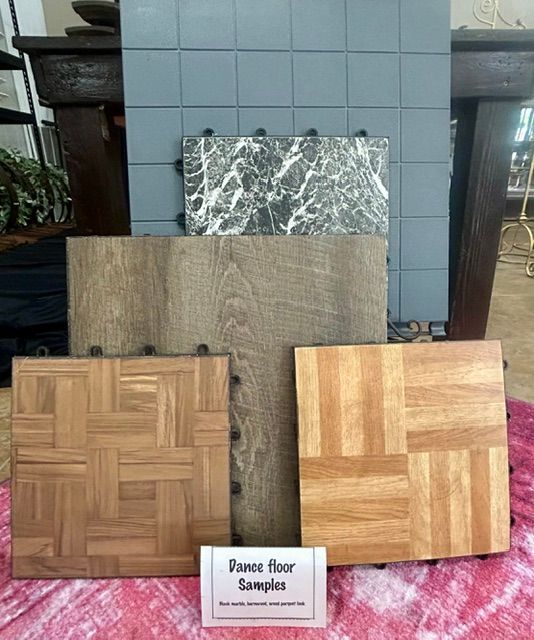 - Dance Floors available in black marble, barn wood look and wood parquet look.